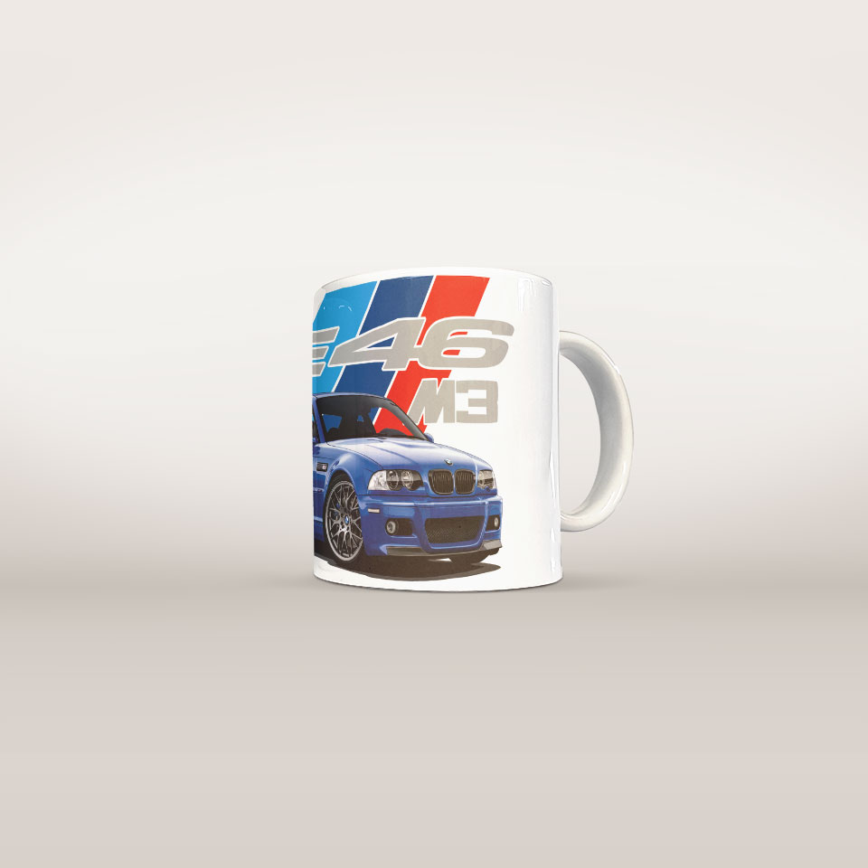 Ceramiczny kubek dla prawdziwego fana motoryzacji! Wyjątkowy nadruk inspirowany światem samochodów sprawi, że każdy łyk ulubionego napoju nabierze prędkości. Solidne wykonanie i nowoczesny design czynią go idealnym dodatkiem do codziennych chwil relaksu, zarówno w domu, w biurze, w warsztacie czy garażu. Świetny pomysł na prezent dla pasjonatów aut! Grafika przedstawia sylwetkę BMW E46 M3
