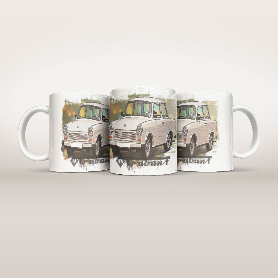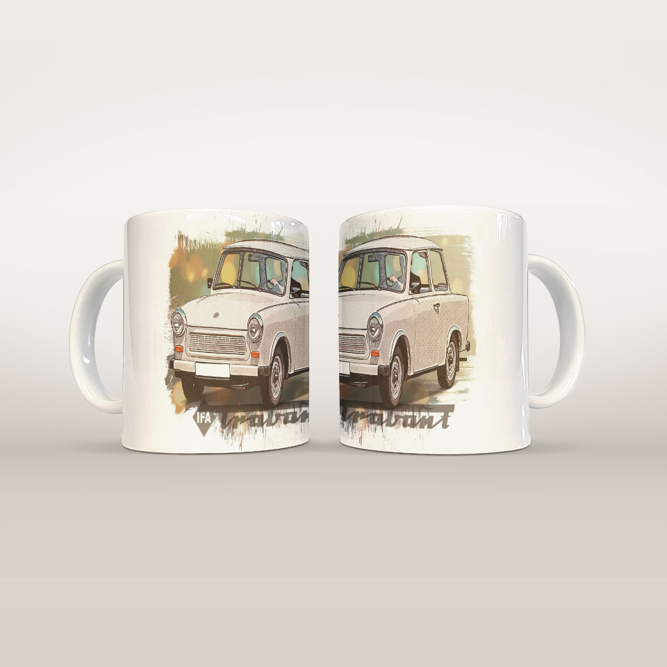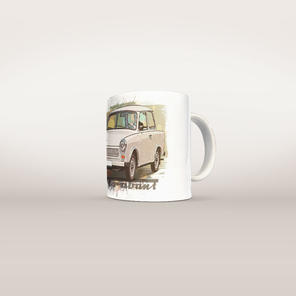 Ceramiczny kubek dla prawdziwego fana motoryzacji! Wyjątkowy nadruk inspirowany światem samochodów sprawi, że każdy łyk ulubionego napoju nabierze prędkości. Solidne wykonanie i nowoczesny design czynią go idealnym dodatkiem do codziennych chwil relaksu, zarówno w domu, w biurze, w warsztacie czy garażu. Świetny pomysł na prezent dla pasjonatów aut! Grafika przedstawia Trabanta 601
