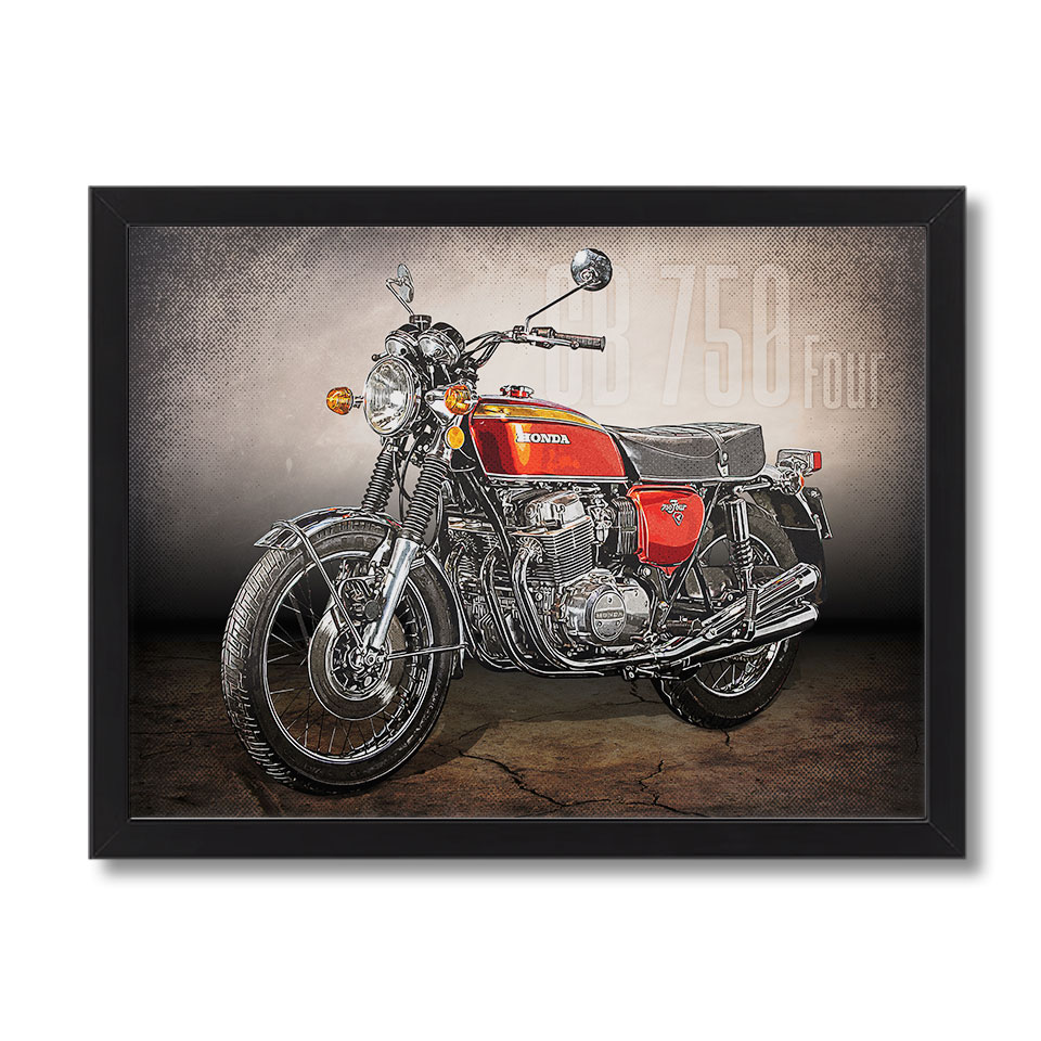 Obraz z naszą autorską grafiką w stylu retro, przedstawiający motocykl marki Honda CB750 Four