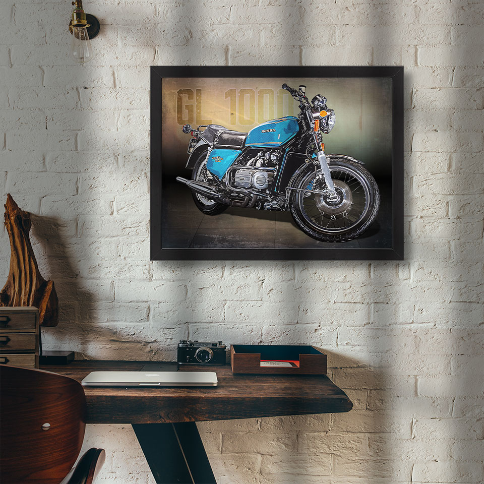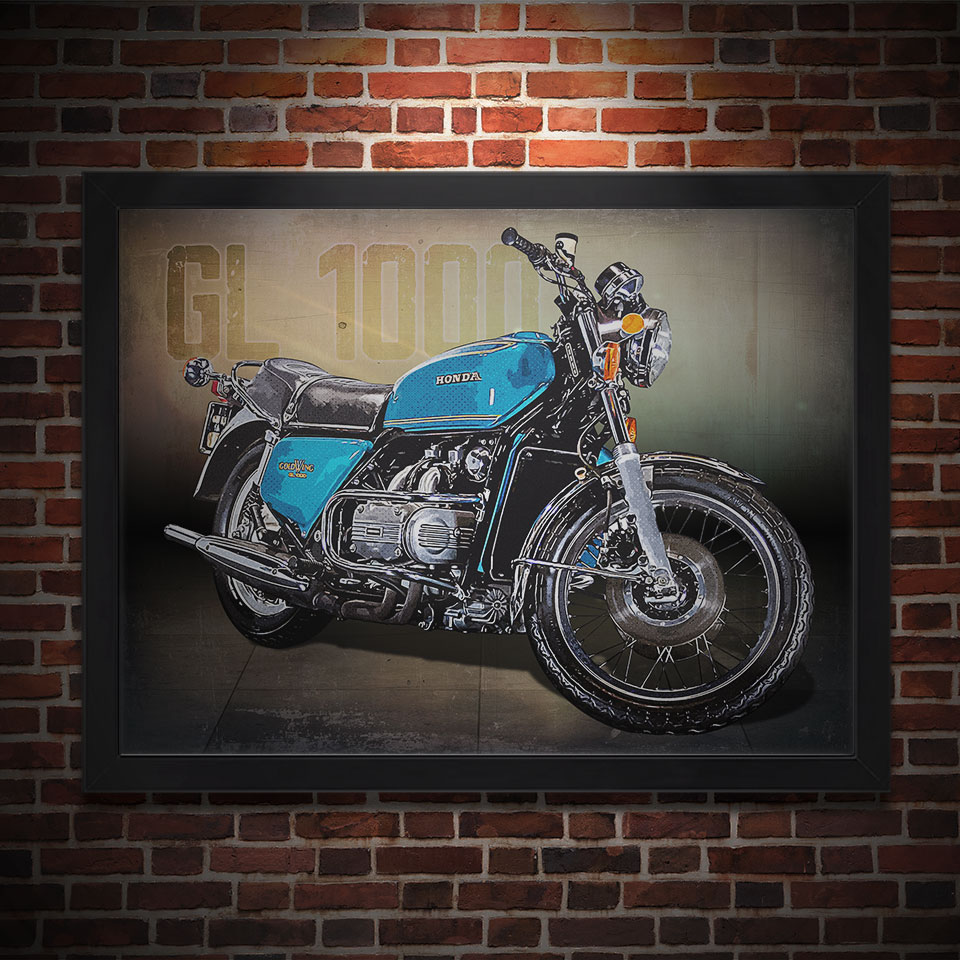 Obraz z naszą autorską grafiką w stylu retro, przedstawiający motocykl marki Honda GL 1000 Golwing