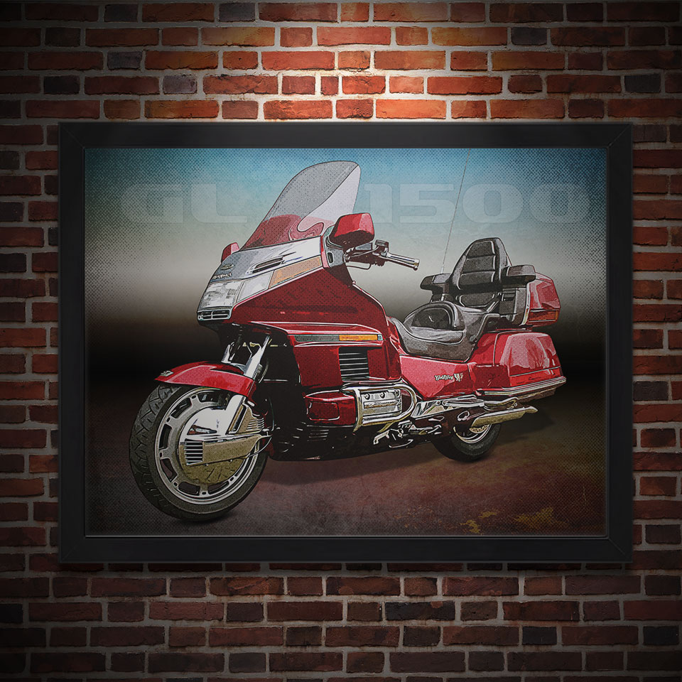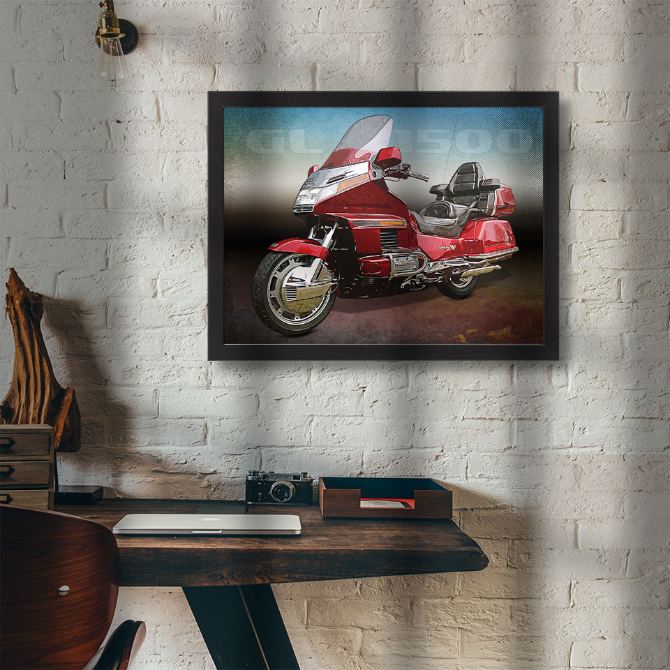 Obraz z naszą autorską grafiką w stylu retro, przedstawiający motocykl marki Honda GL 1500 Golwing