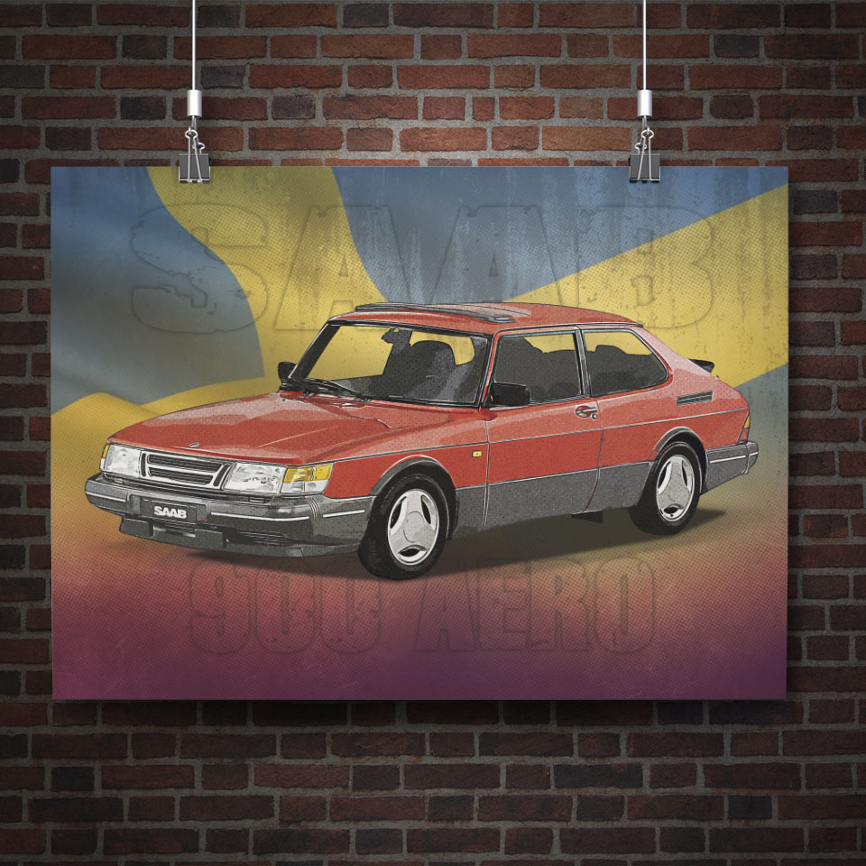 Plakat retro Saab 900 Aero